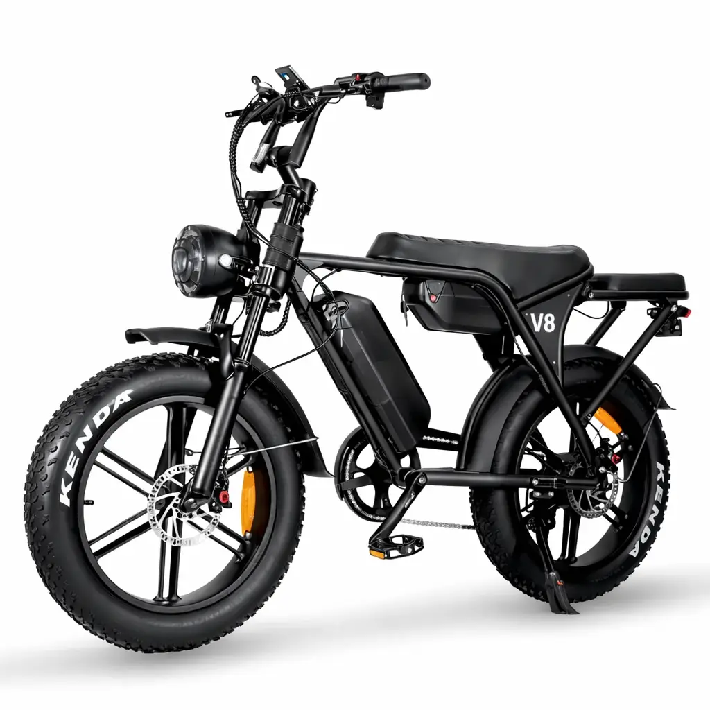 De Ouxi H9 Fatbike combineert kracht, comfort en design voor een ongeëvenaarde rijervaring. Ideaal voor off-road avonturen en stedelijke ritten, deze elektrische fatbike is uitgerust met brede banden en een stevige vering, ontworpen om alle terreinen met gemak aan te kunnen. Dankzij zijn opvallende ontwerp en krachtige prestaties trekt de H9 zowel de aandacht van avonturiers als van forenzen die een robuuste, betrouwbare e-bike zoeken.