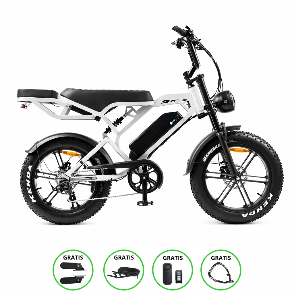 De V20 Pro Fatbike is uitgerust met hydraulische schijfremmen voor betrouwbare controle, en het klassieke stuur en de USB-poort maken het geheel af. Met een gewicht van slechts 37,45 kg is deze fatbike verrassend licht en makkelijk in gebruik.
